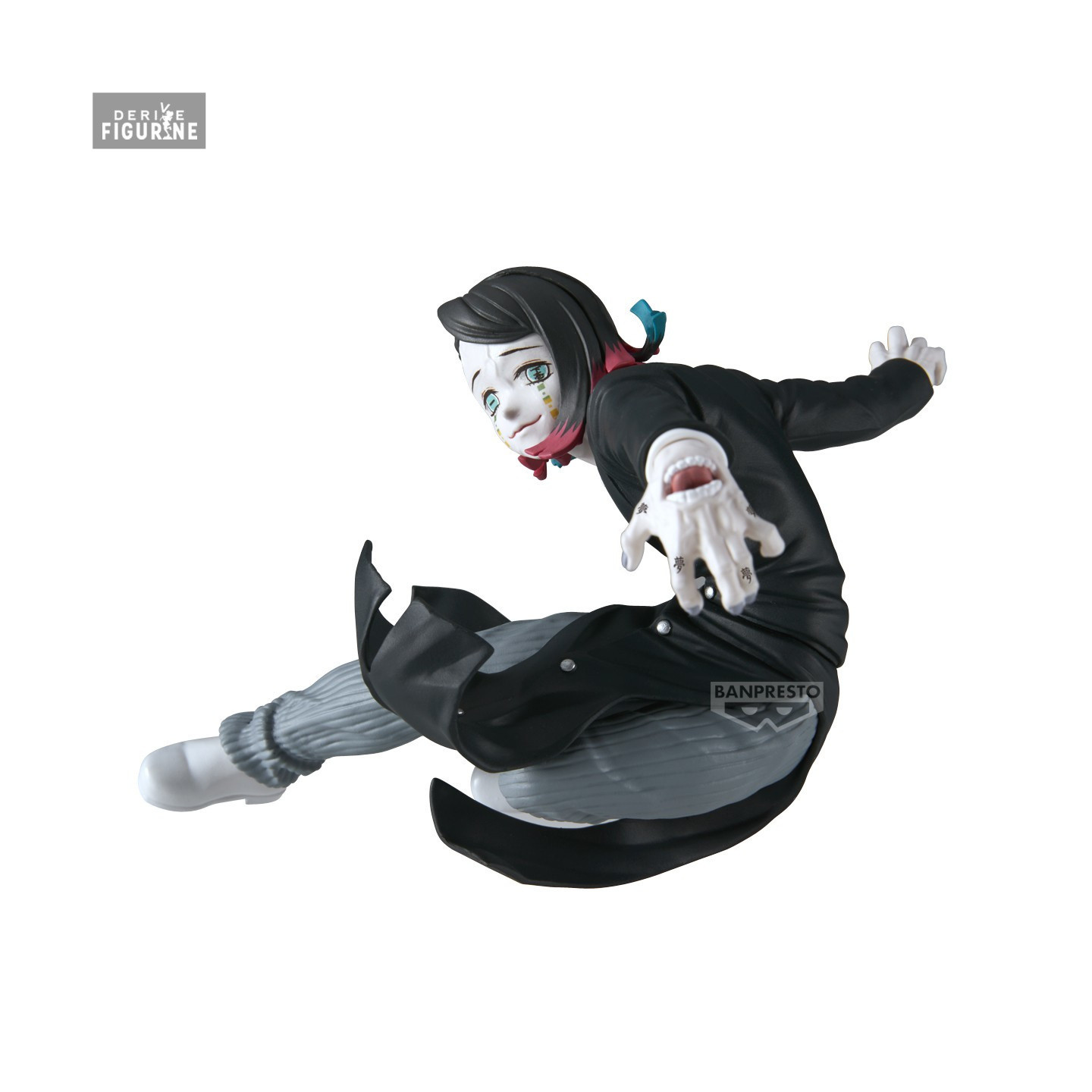 This PVC figure, part of the Vibration Stars collection and produced by Banpresto, stands 11 centimeters tall. It depicts Enmu in a dynamic pose, poised to manipulate his opponents with his eerie smile and piercing gaze. The fine details of his flowing black outfit, gradient-dyed hair, and distinctive markings on his face and hands offer a faithful recreation of the character. A must-have figure for all Demon Slayer fans, showcasing the elegant and terrifying menace that Enmu embodies.