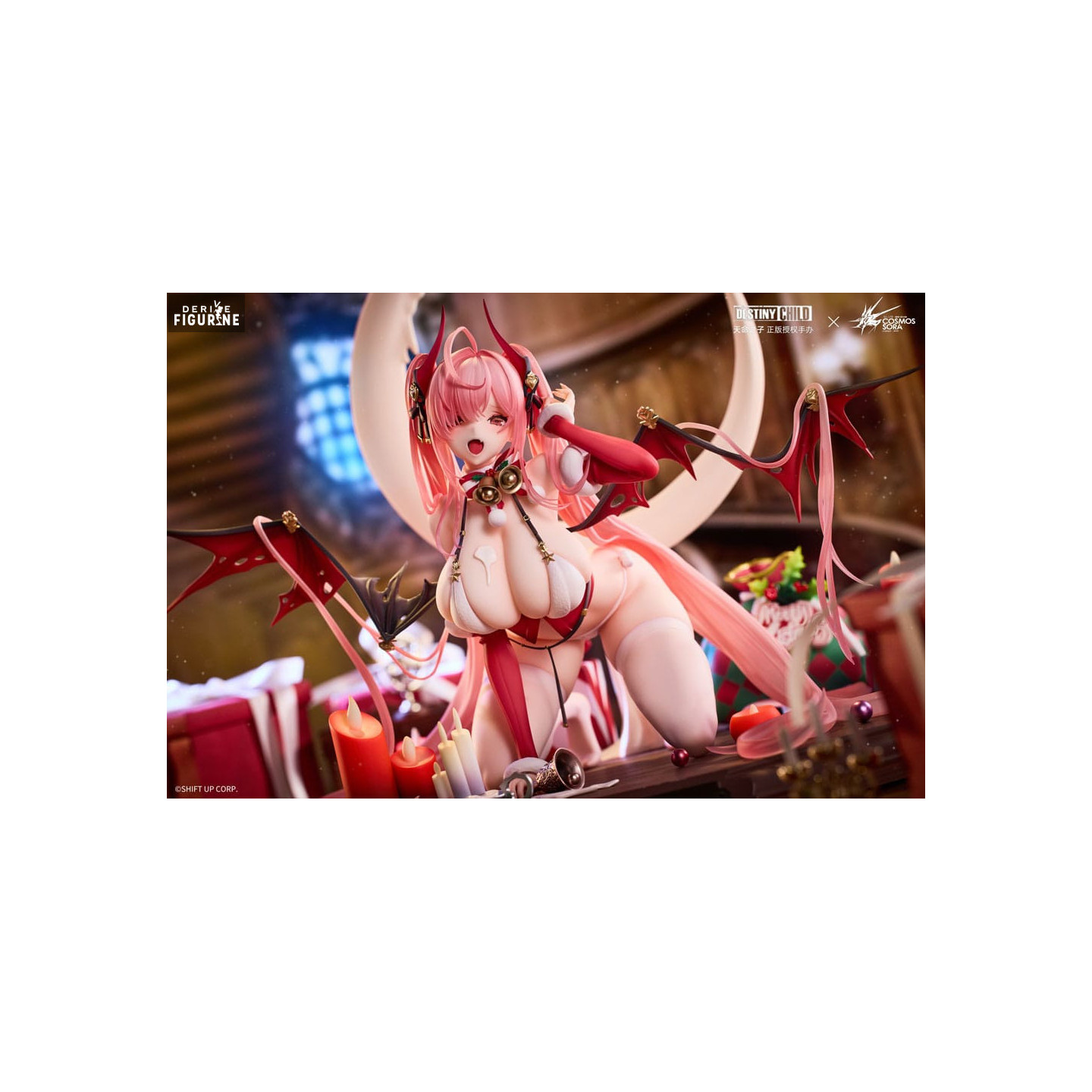 The figurine depicts Grilla in a sensual and elegant pose, kneeling in front of Christmas decor, with candles and festive ornaments that add a warm atmosphere to the setting. Her snow suit reveals her seductive appearance while adding a soft and festive atmosphere. The meticulous details of his facial expression, accessories and festive surroundings make this figure a true work of art.