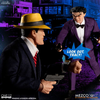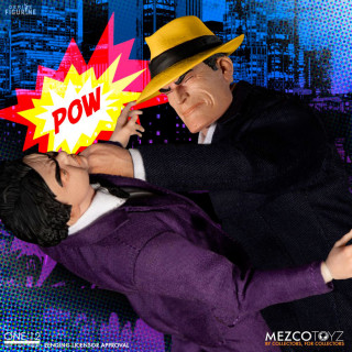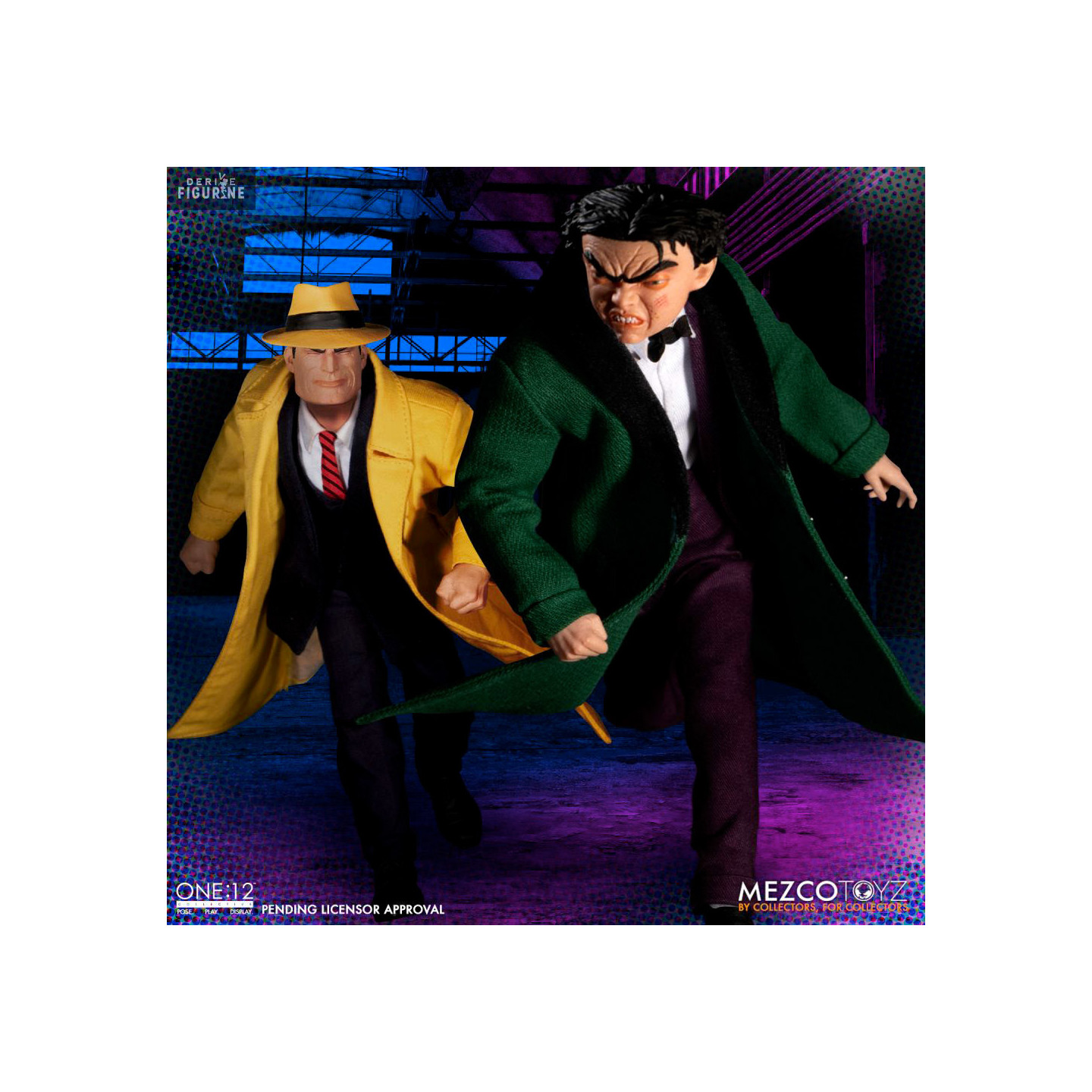 Official figures of Dick Tracy vs Flattop which measure approximately 16 centimeters high. They are from the One:12 collection. The manufacturer is Mezco Toys.