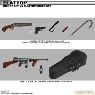 Here is a figurine pack consisting of detective Dick Tracy and his enemy Flattop in a Boxed Set packaging from the One:12 collection. Detective Dick Tracy has set out to take crime out of town and on the other side Flattop Jones has been hired to take him down and not let this policeman have his way. These two figurines are sold with a maximum of accessories!
