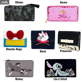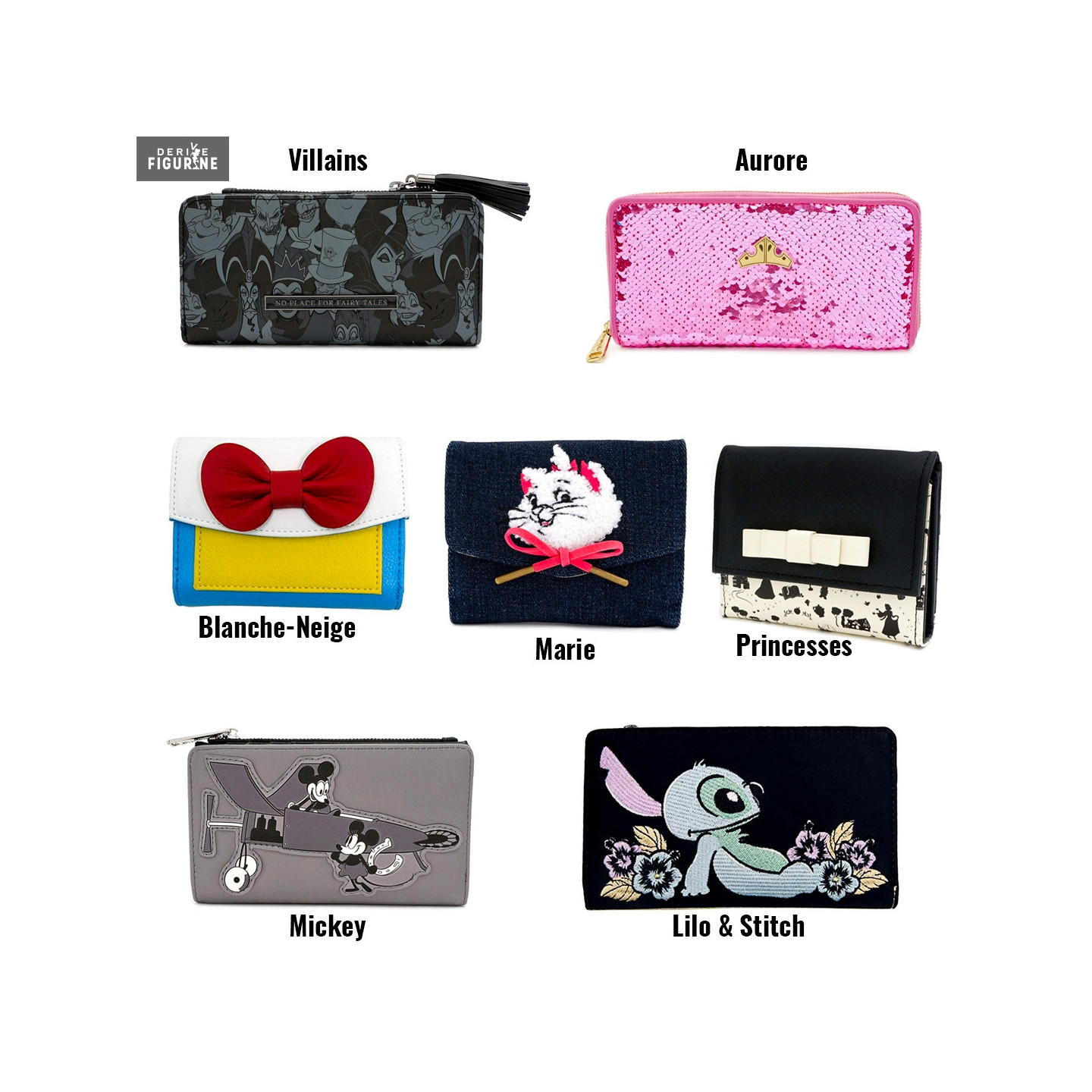 Offical Disney wallet of your choice between Princesses, Lilo & Stitch, Villains, Snow White, Marie, Mickey or Aurora (see details in description). The manufacturer is Loungefly.