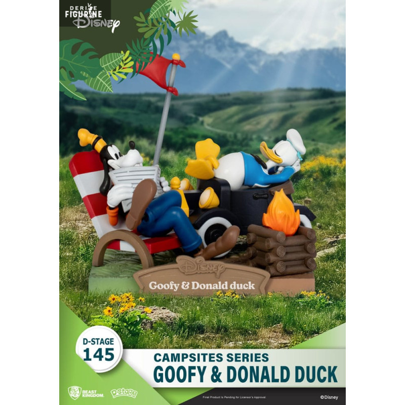 Official figure of Goofy & Donald Duck, Campsite Series in PVC which measures approximately 10 centimeters high. It is from the D-Stage collection. The manufacturer is Beast Kingdom.
