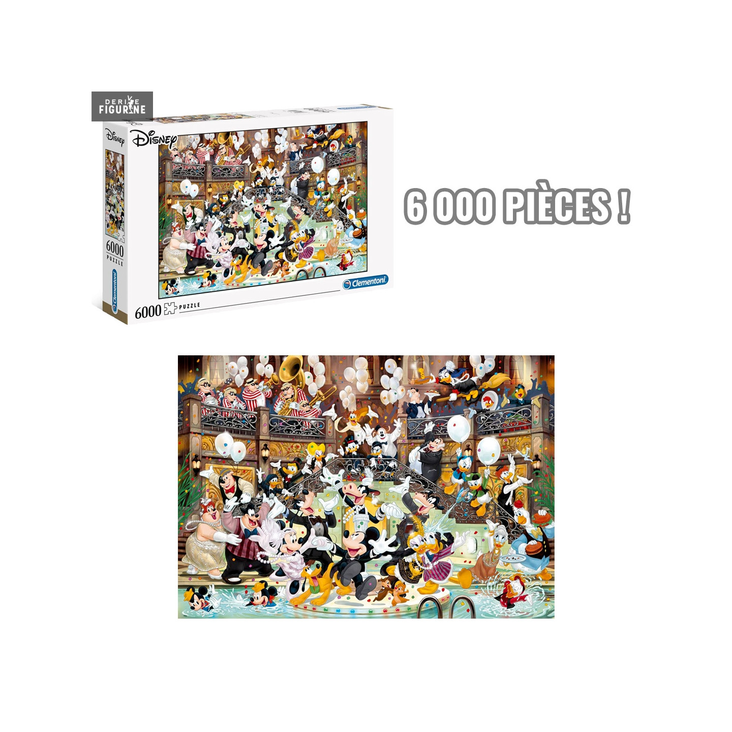 Official puzzle of Disney of 6 000 pieces measuring approximately 168,5 x 118,5 centimeters. The manufacturer is Clementoni.