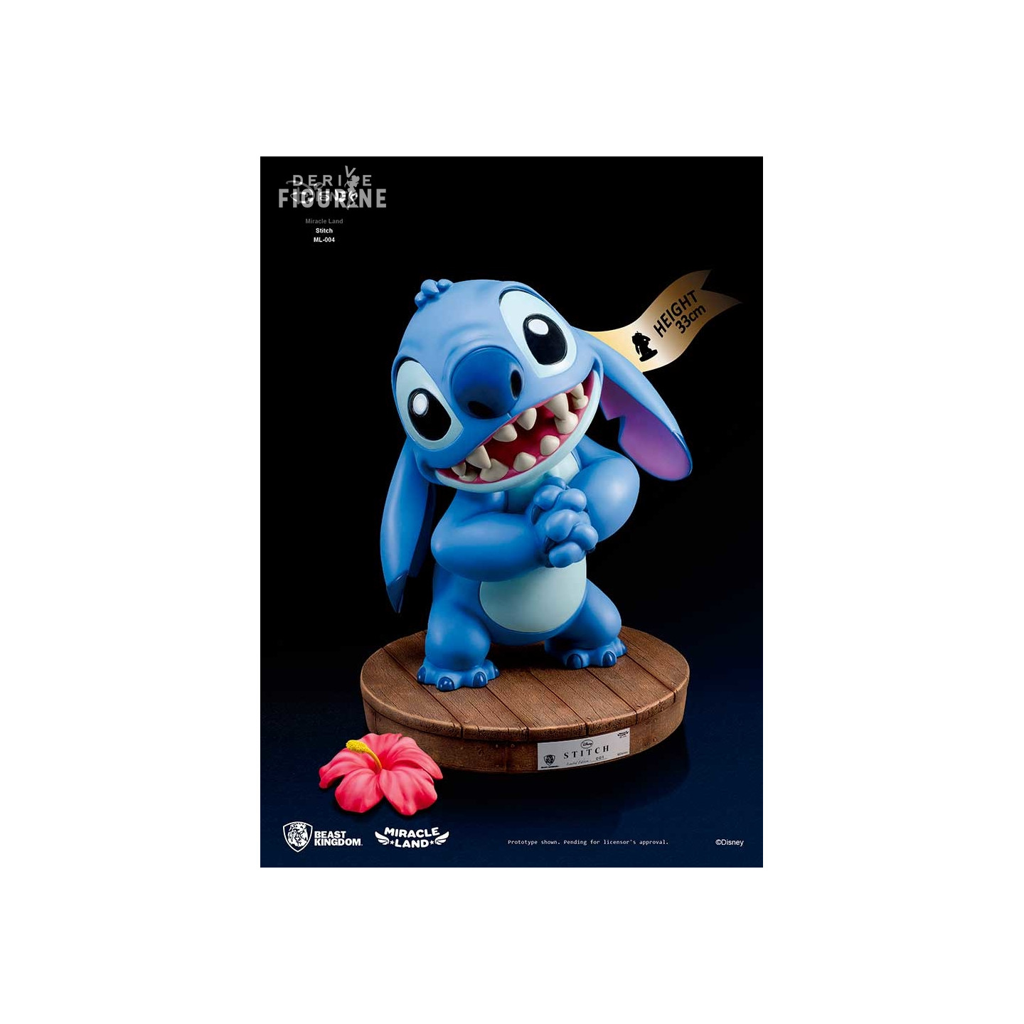 Official Stitch figure in resin about 33 centimeters high. It is from the Miracle Land collection. The manufacturer is Beast Kingdom.