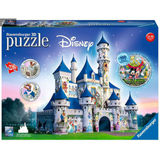 Official puzzle of the Disney Castle of 216 pieces measuring approximately 50 centimeters high, 27 long and 45 wide. The manufacturer is Ravensburger.