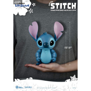 Official figure of Stitch in PVC which measures approximately 18 centimeters high, scale 1/9. It is from the Dynamic 8ction Heroes collection. The manufacturer is Beast Kingdom.