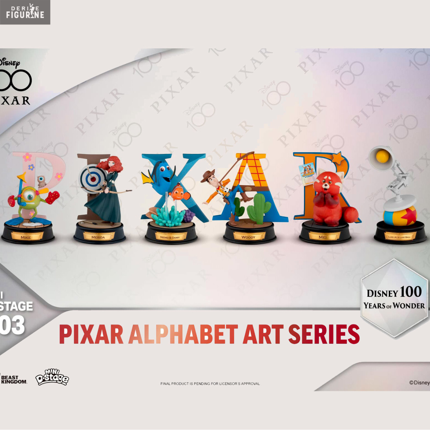 To celebrate 100 years of Disney and Pixar, you have the possibility of obtaining these six small dioramas. They are so cute because they represent a character each, with one of the letters in the background to reform the word PIXAR. Mike Wazowski (Monsters Inc.) is on the P, Merida (Brave) on the I, Nemo and Dory are on the X, Woody (Toy Story) lassoed the A, Mei (Turning Red) decorated the R with a poster of his favorite band, while the I is represented by the Pixar ball and lamp (Luxo).