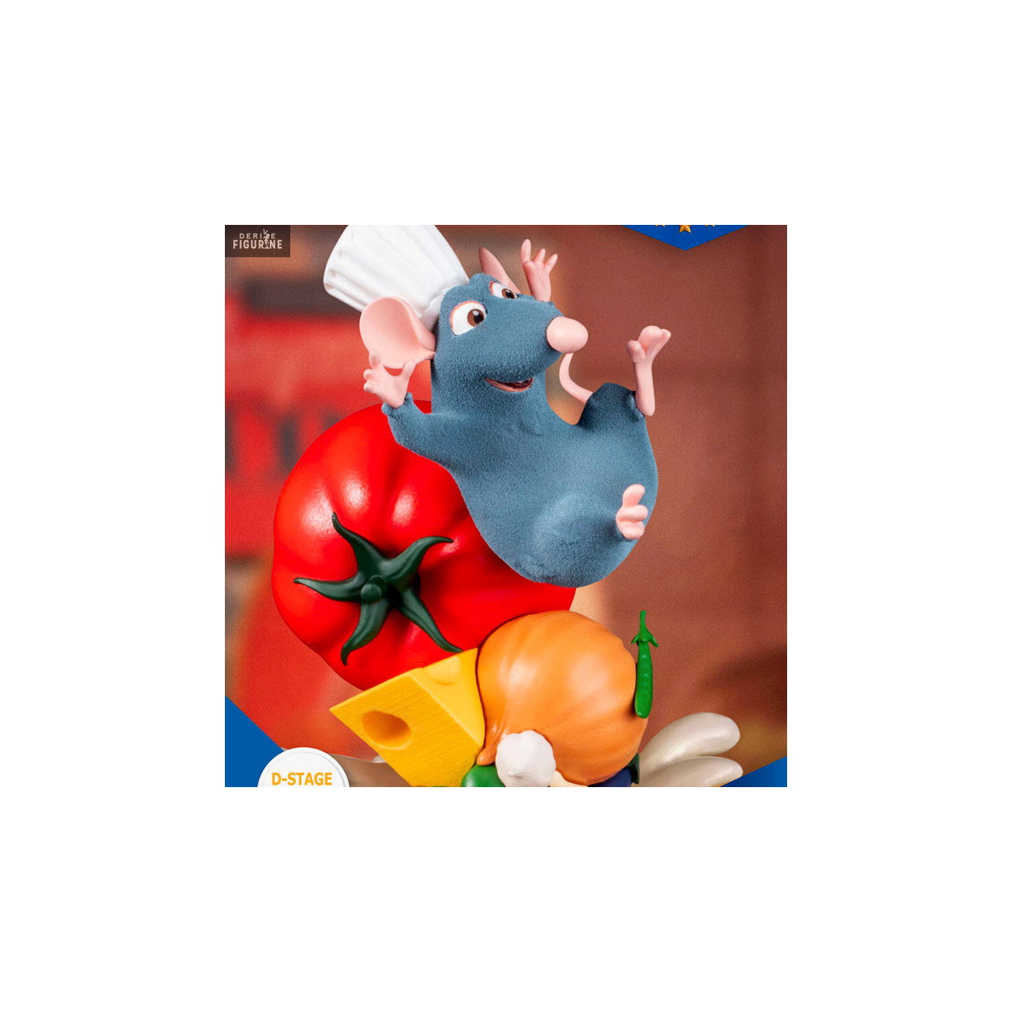 As Gusteau said so well, everyone can cook. That's what Remy has been telling himself for years, because even though he's a rat, he loves good food but he wouldn't have thought of becoming a cook in a restaurant and yet that's what he has. made thanks to Alfredo Linguini. Here you can admire our little chef on the stove, preparing a nice little dish with a tomato, an onion, cheese and a whole bunch of other ingredients. On top of that, Remy's figurine is flocked, which gives the impression that he has small hairs.