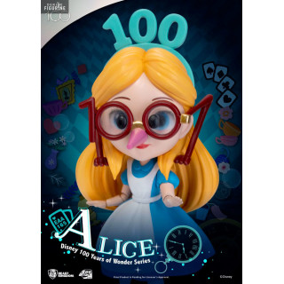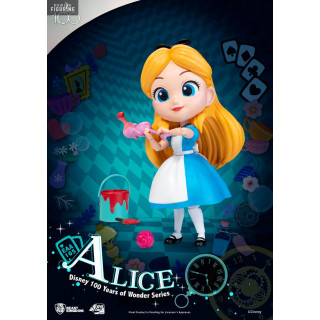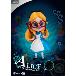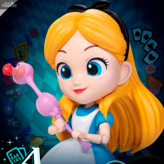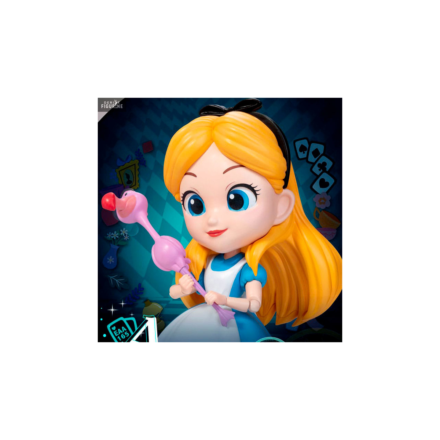 Alice is a young girl who fell asleep and found herself in a somewhat strange world. She lived there a lot of adventures, and you have just some of the creatures she met like the glasses or a pink flamingo which serves as a mallet for croquet. She also has multiple faces and other accessories to display her in many different ways, including one where she's having a cup of tea for Disney's birthday.
