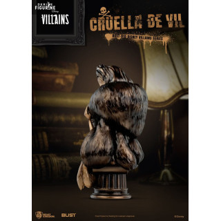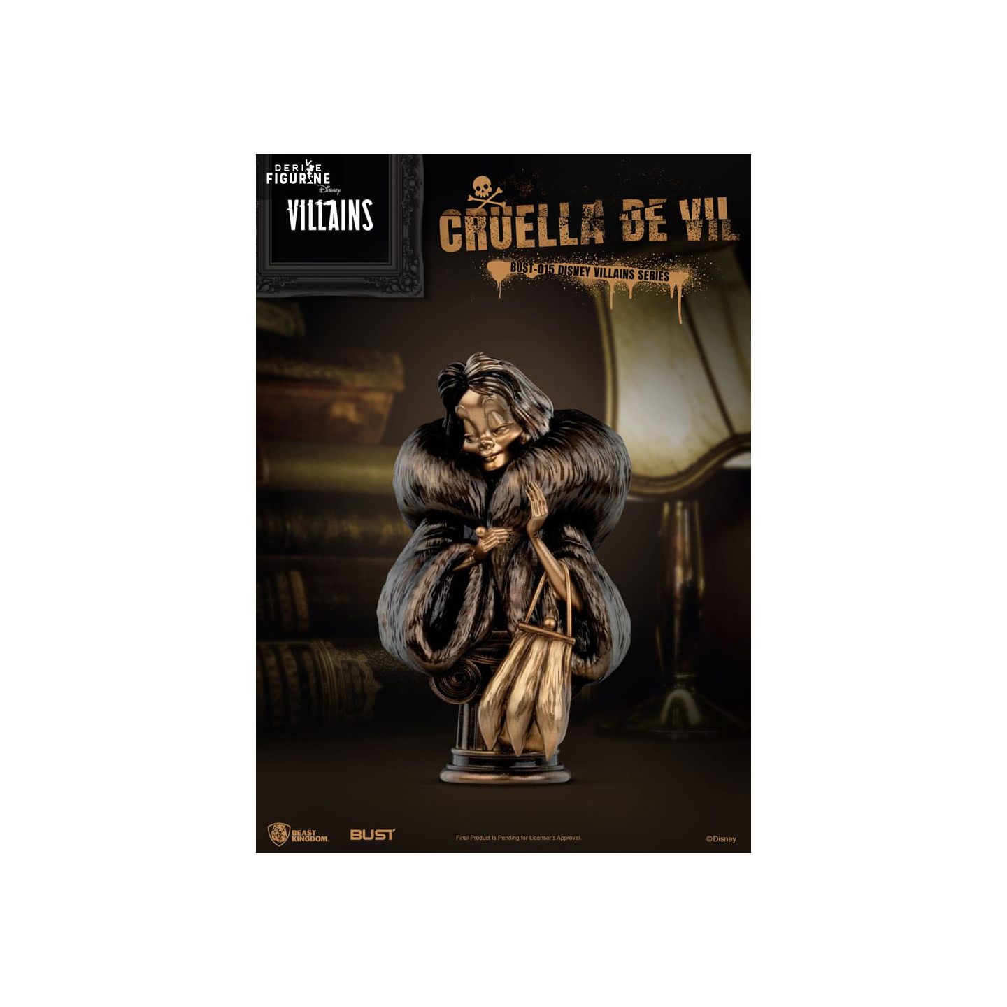 Official bust of Cruella De Vil in PVC which measures approximately 16 centimeters high. It is from the Villains Series collection. The manufacturer is Beast Kingdom.