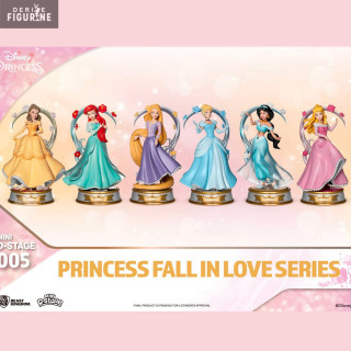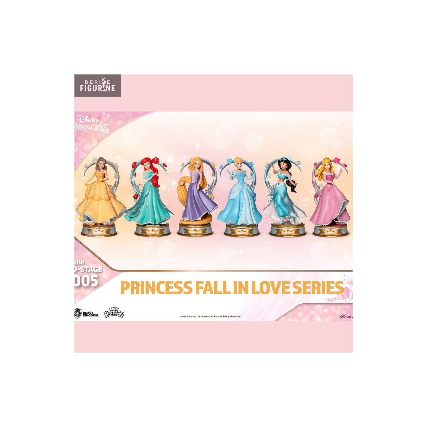 The Disney Princess Fall In Love Mini Diorama Stage Figure 6-Pack is an impressive collection featuring six of the most iconic Disney princesses. Here are the characters included in this pack: Jasmine: The princess of Agrabah, Jasmine, is known for her beauty, independence and love of adventure. She is famous for her courage and her desire for freedom. Cinderella: Cinderella, the kind and sweet girl, is one of Disney's most beloved characters. His grace and kindness have won generations of fans. Ariel: The Little Mermaid Ariel is an underwater princess who dreams of living on land. His curiosity and love for music make him an endearing character. Aurora: Sleeping Beauty, Aurora, is a princess who was cursed to fall asleep for a hundred years. Its beauty and charm are legendary. Belle: Belle, the heroine of "Beauty and the Beast", is an intelligent and courageous young woman who sees beyond appearances to find true beauty. Rapunzel: Rapunzel is a princess with long magical hair. She is known for her adventurous spirit and determination. This Mini Diorama Stage figure pack captures the magic of these iconic Disney princesses in elegant, detailed poses. It's a great addition to any Disney fan's collection and helps celebrate the beauty and grace of these beloved heroines.