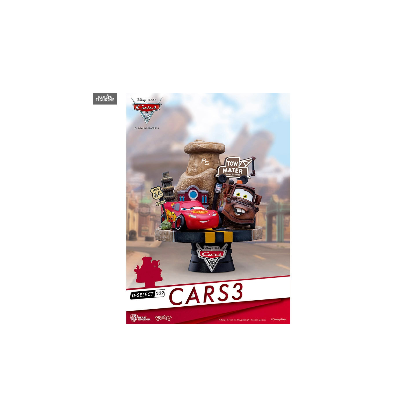 Here we have a nice figurine of Flash Mc Queen with his best friend Mater. There is a sign on Route 66 and many other details that will please fans of animated movies Cars.