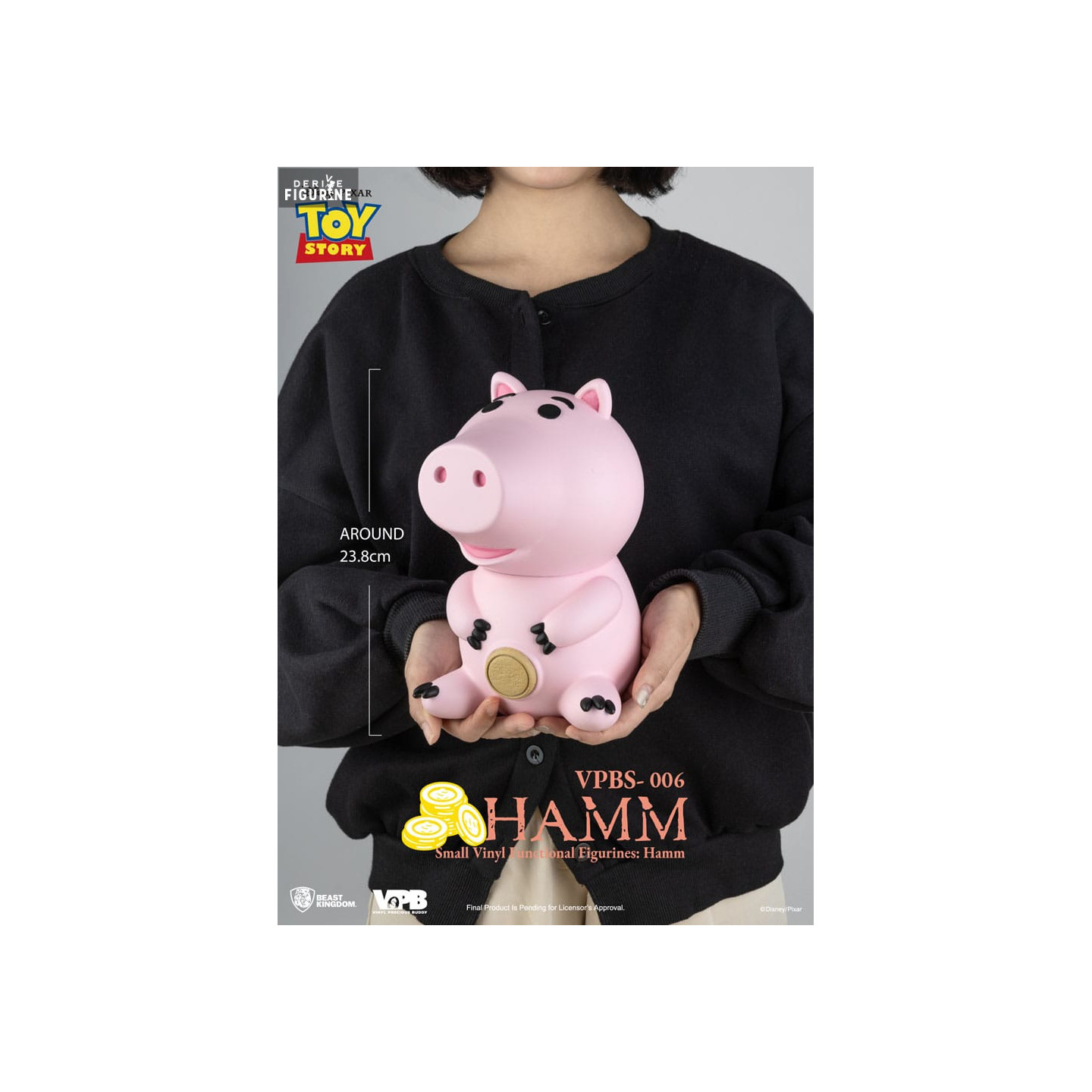 Discover this adorable official figure of Hamm, the iconic piggy bank from Toy Story. Depicted with his signature look, Hamm is ready to join your collection or become a fun functional accessory. With his wide, mischievous smile and design true to his on-screen counterpart, this vinyl figure is a perfect tribute to Pixar’s colorful and captivating universe.