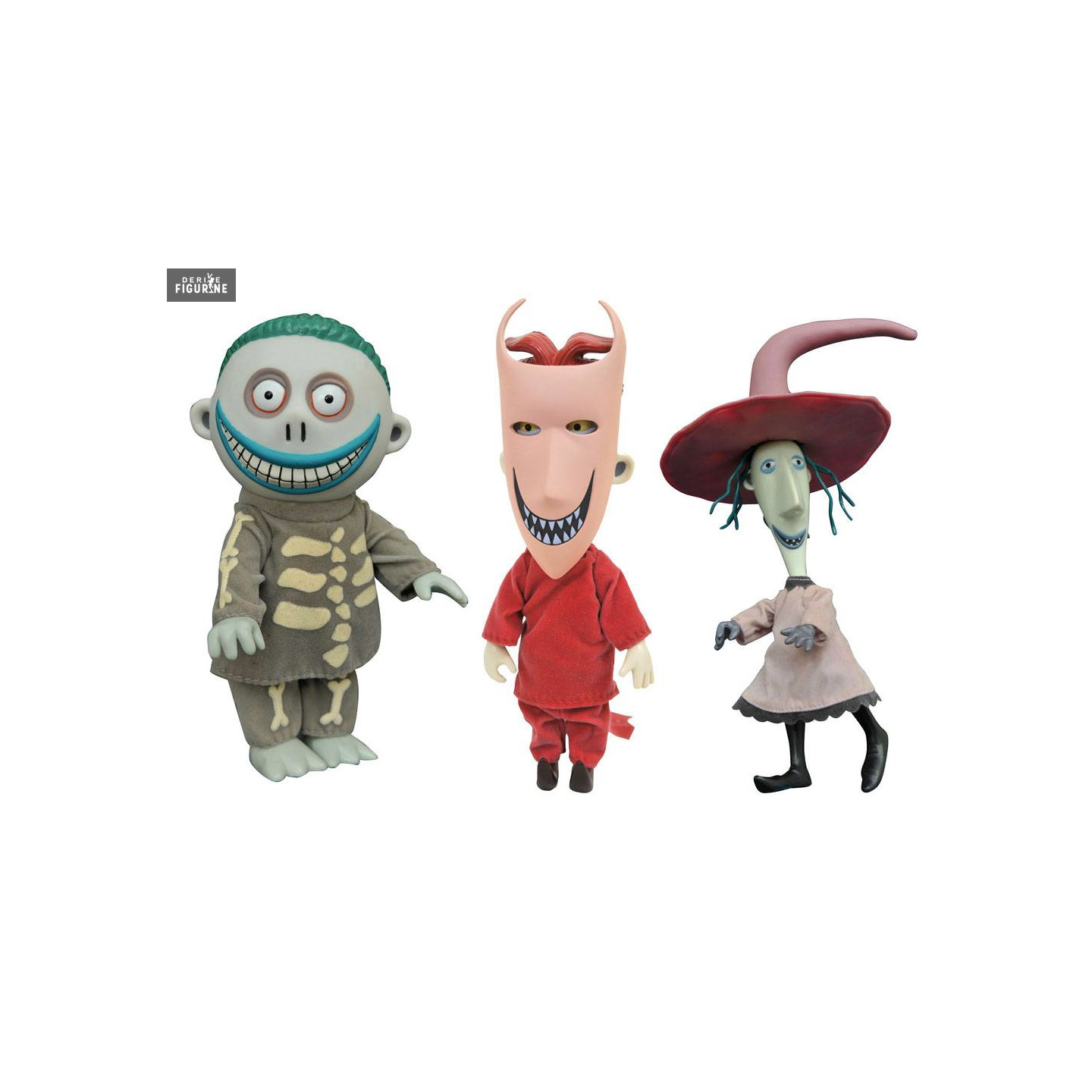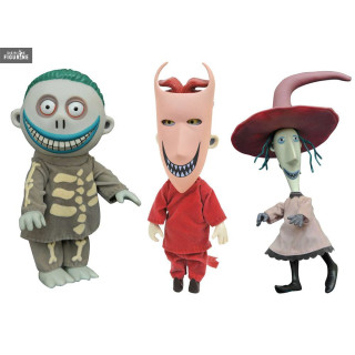 Lock, Shock and Barrel are three little rascals in the service of Oogie Boogie. In The Nightmare Before Christmas, Jack Skellington gives them the mission to bring him the Ear Pie, but they are not really good at it and will have to go back to it several times. What's cool with his three dolls is that their clothes are made with fabric.