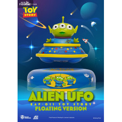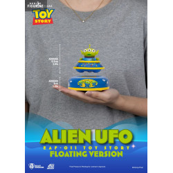 Part of Beast Kingdom’s Egg Attack Floating series, this figure features magnetic levitation and built-in LED lighting. The result: the saucer hovers and gently spins above its circular base, simulating flight. The stand is decorated with the Pizza Planet logo and playful Alien artwork in a retro design faithful to the original Pixar look.