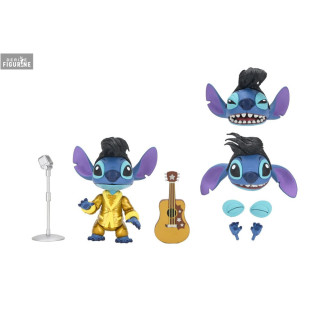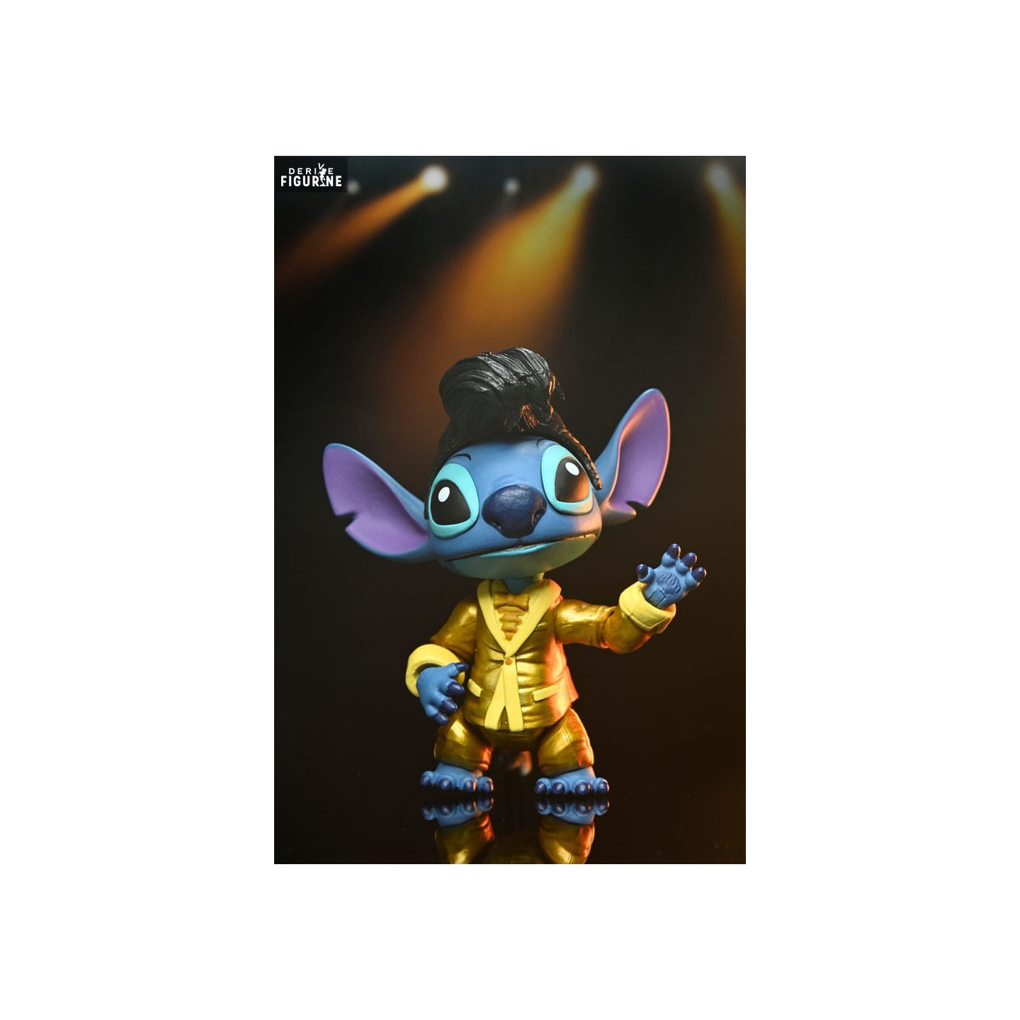 Official figure of Stitch, Gold Suit Elvis which measures approximately 18 centimeters high. It is from the Ultimate collection. The manufacturer is NECA.