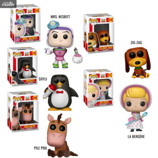 Official figure of your choice between Slinky dog, Bo peep, Mrs. Nesbitt, Wheezy or Bullseye in vinyl, about 9 centimeters high. The manufacturer is Funko.