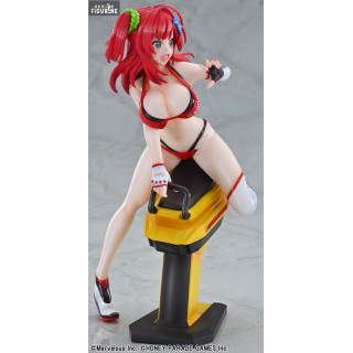 The official Iruka Sakimiya figure, manufactured by Kaitendoh, is a faithful and detailed representation of this charismatic character. Standing approximately 23 centimeters tall at a 1/7 scale, this PVC figure captures Iruka in a dynamic pose, riding a water sports machine with an expression of joy and determination. The meticulous details of her costume, accessories, and equipment are carefully reproduced, offering an impressive level of realism. The base of the figure, depicting a yellow watercraft, adds an extra touch of authenticity and energy to this collectible piece.