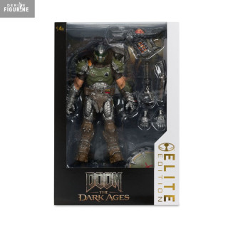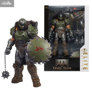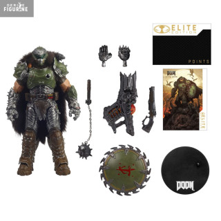 Official figure of Doom Slayer, Elite Edition which measures approximately 18 centimeters high. The manufacturer is McFarlane Toys.