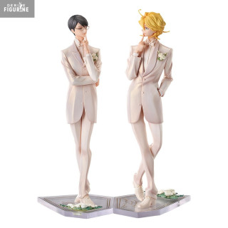 Two suits, two matching glances, and one quiet love story. Hikaru Kusakabe and Licht Sajo from Doukyuusei appear here in their Wedding Version, captured in a moment of elegant stillness. Their relationship is one of gentle tension and real connection—and this double figure set reflects that beautifully.