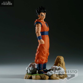 The Dragon Ball Z "History Box" Collection Adult Son Gohan Figure is an iconic representation of this beloved character. Gohan is here dressed in his classic orange and blue outfit, ready to spring into action to protect the Earth. The figure's meticulous details perfectly capture Gohan's appearance, from his distinctive hairstyle to his determined expression. As one of the heroes of the Dragon Ball Z saga, Gohan embodies bravery and determination, and this figure pays homage to those qualities. For fans of the series, this figure is a reminder of Gohan's heroic moments, including his battles against the fearsome enemies of Dragon Ball Z. He is a valuable addition to any Dragon Ball figure collection, symbolizing the legacy of Gohan as Earth's protector. A collector's item that evokes the greatness of this character.