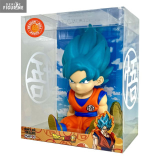 Official piggy bank of Son Goku Super Saiyan Blue in PVC which measures approximately 19 centimeters high. The manufacturer is Plastoy.