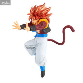 Official figure of Super Saiyan 4 Gogeta in PVC which measures approximately 16 centimeters high. It is from the Blood of Saiyans collection. The manufacturer is Banpresto.