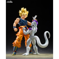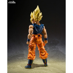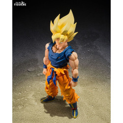 Official figure of Super Saiyan Son Goku (Fighter of Rage) which measures approximately 14 centimeters high. It is from the S.H.Figuarts collection. The manufacturer is Tamashii Nations.
