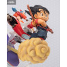 Dive into the timeless world of Dragon Ball with this exceptional figurine featuring Son Goku and Bulma, two of the most iconic characters from this legendary saga. Young Son Goku is depicted here on his trusty Flying Nimbus, ready to embark on an adventure with his combat staff in hand. Innocent, curious, and possessing extraordinary strength for his age, this young Saiyan is on the verge of the incredible adventures that will define the world of manga and anime. Alongside him is Bulma, the brilliant and daring inventor, riding her futuristic motorbike, embodying the spirit of exploration and innovation that Dragon Ball is known for. This dynamic representation perfectly captures the energy and excitement of the series' early days, where every moment promised adventure and discovery.
