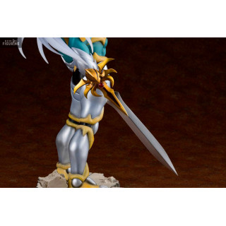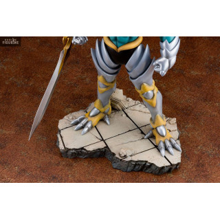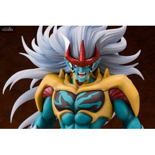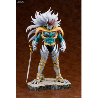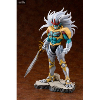 Hadlar is a fairly complex character that you can find in Dragon Quest The Adventure of Dai. Basically, he was the king of evil, but over time and his misadventures, he will gradually change his way of seeing things. On this statuette, you can admire him in his armor, with his hair flying in the wind, and his sword on his right forearm.