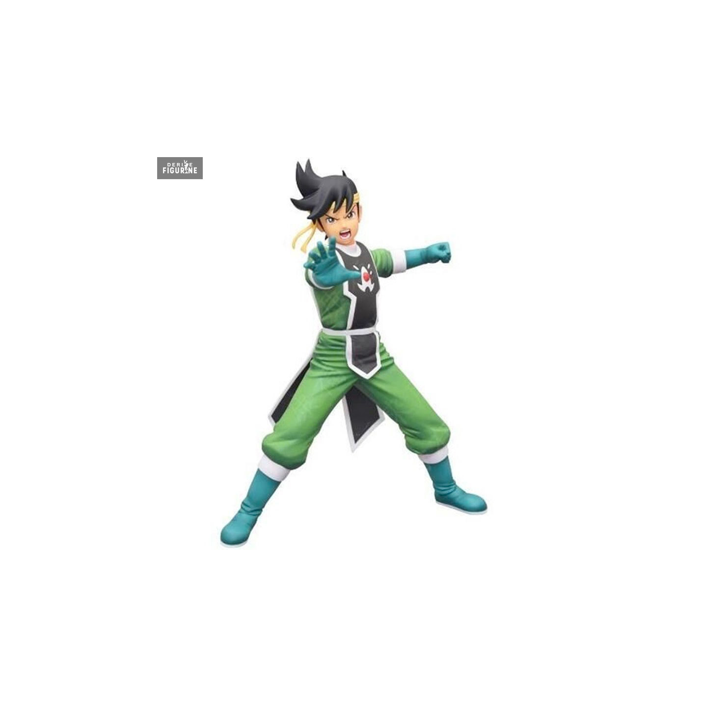 The character, dressed in his characteristic green and black costume, is depicted in full action, with an energetic pose that seems to capture him mid-battle. Details, from facial expressions to costume folds, are meticulously sculpted, reflecting the care and precision for which FuRyu is renowned. This Dragon Quest Pop Figure doesn't just capture the character's appearance; it also captures its essence, thanks to its dynamic design and heroic posture.