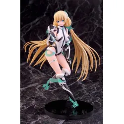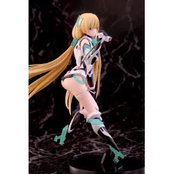 In Expelled from Paradise (Rakuen Tsuihō), the setting is pure sci-fi: humanity has left physical bodies behind to live in a digital world, while Earth becomes a place for real missions and real consequences. Angela Balzac is an investigator sent down there, equipped with advanced tech and a strong sense of purpose. This official PVC figure depicts her in 1/8 scale, standing about 21 cm tall, manufactured by Alphamax.