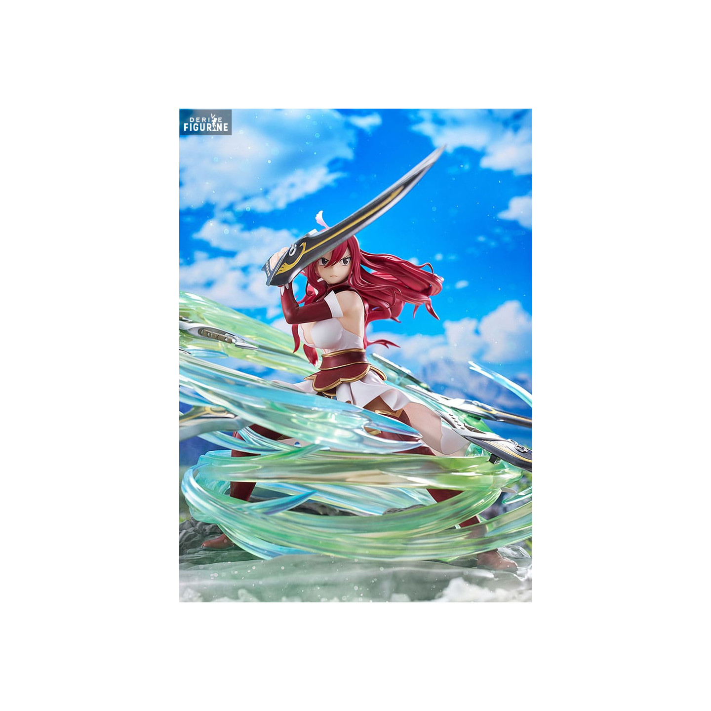 Fairy Tail fans especially appreciate the quality of the sculpture and painting, which determines the characteristics of Erza as well as the fluidity of her large hands. The figurine base has a touch of realistic supplement, similar to the sole of a rubber band. The moving effects of the pieces, in a translucent material, create a vivid and delicate impression.