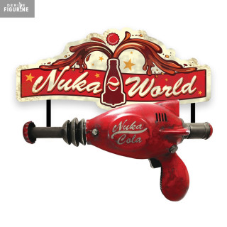 The Nuka-World sign accompanying the replica adds a touch of nostalgia and immersion, reminiscent of the retro-futuristic signage from the game’s famous amusement park. Every detail, from the Nuka-Cola branding to the finish of the gun, has been carefully recreated to provide a collectible piece that will delight both players and fans of the Fallout universe.