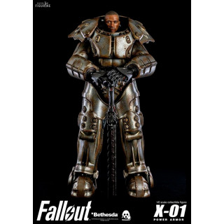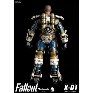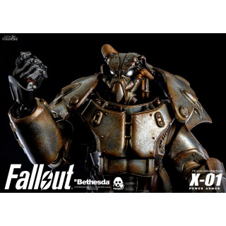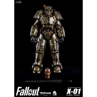Official X-01 Power Armor figure which measure about 37 centimeters high, scale 1/6. The manufacturer is Threezero. Has lighting functions and requires 2 AG13 batteries not included.