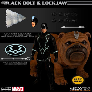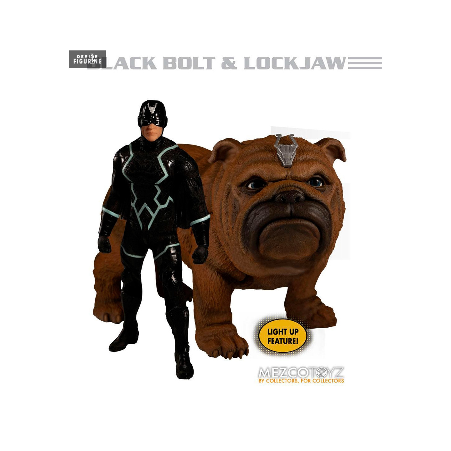 Official figures of Black Bolt and Lockjaw which measure about 17 centimeters high, scale 1/12. They are from the One:12 collection. The manufacturer is Mezco Toys.