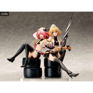 Car races or any other thing are things that Jeanne d'Arc and Astolfo love, since they come together to support their team. They do a little pose sitting on tires and they really seem to be having fun. Of course it must be more interesting than looking for the Grail. So if you like them both, this is a figure made for you.