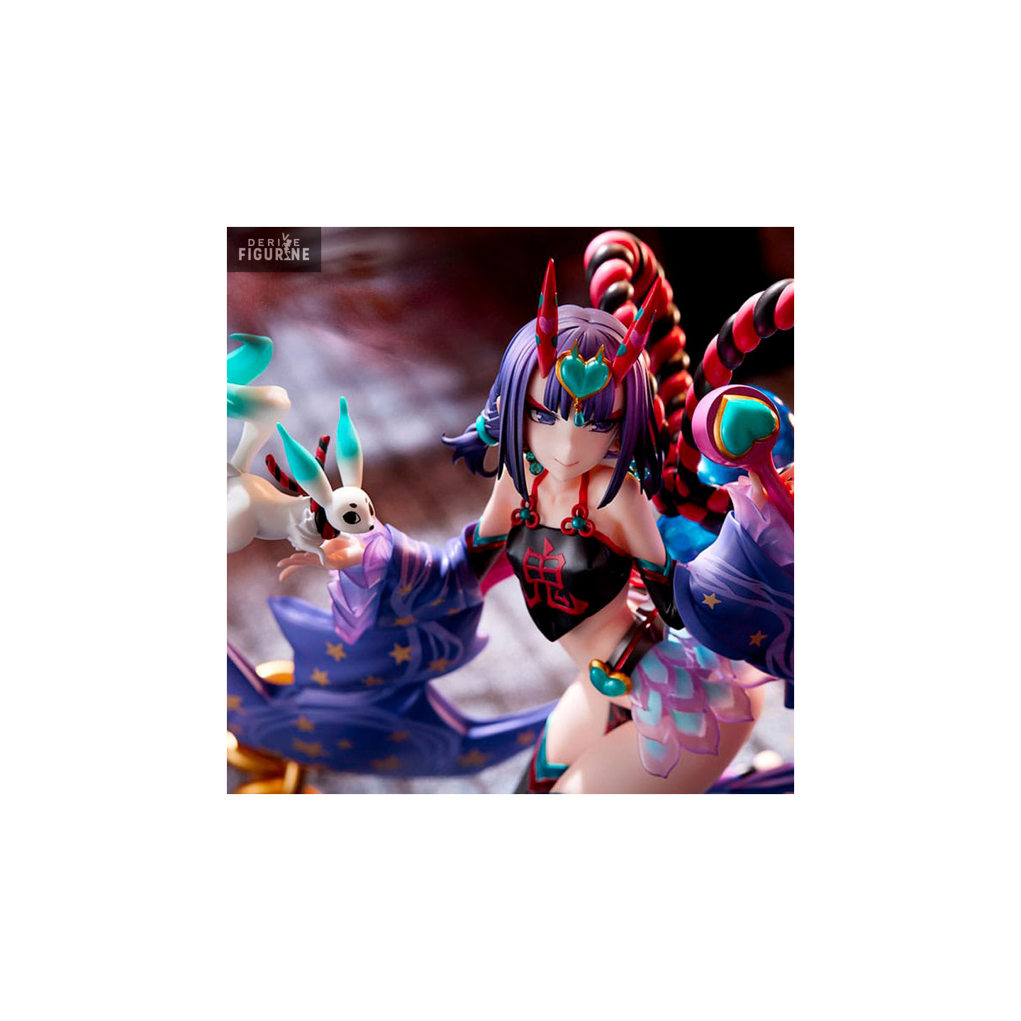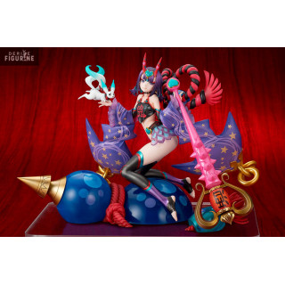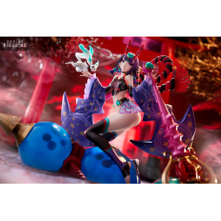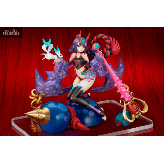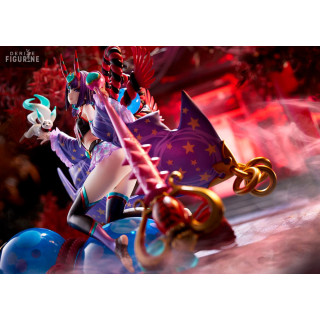 The "Caster/Shuten Douji, Oniland figurine from Fate/Grand Order represents Shuten Douji in her Caster class. Shuten Douji is known to be an Oni of Dharmapala, a protector of the oni race. This figurine represents her in her caster form. Caster, but she nevertheless retains her characteristic oni physical brutality. Her skill set is primarily offensive, and she possesses a powerful, single-targeting Buster-type Noble Phantasm. Shuten Douji is proud of her title as a Magifender oni, and she has a role important thing to save the world from the oni. She is determined to follow this path to save the oni. She offers Fate/Grand Order fans the opportunity to celebrate this unique character in Halloween mode.