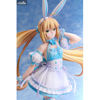 The figurine presents Altria Caster in an elaborate maid-style outfit with blue and white accents, emphasizing her innocent and pure side while maintaining a royal elegance. The long bunny ears add a touch of whimsy and charm, enhancing her adorable appearance. Her graceful and dynamic pose, with a mischievous smile on her lips, perfectly captures her unique character.