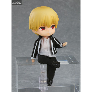 Gilgamesh, known for his arrogance and immense power as the King of Heroes, is presented here in an irresistible chibi version. His outfit, faithfully reproduced, includes a sleek black jacket with white accents, matching black pants, and a crisp white shirt. The clothes are made of fabric, adding a touch of realism and sophistication to this Nendoroid Doll figure.