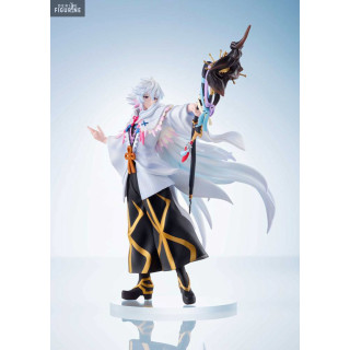 This official Caster/Merlin figure, from the ConoFig collection, stands approximately 20 centimeters tall and is crafted in PVC by Aniplex. It captures Merlin in all his glory, dressed in his elegant white cloak adorned with feathers and floral patterns. His distinctive staff, intricately detailed, and his graceful pose add a touch of majesty to this piece. The meticulous details of his serene expression and outfit make this figure particularly realistic and captivating. Perfect for fans of Fate/Grand Order, this piece is an essential addition to any collection or a perfect gift idea.
