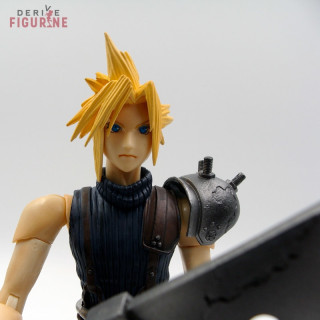 Second-hand and official Cloud Stife figure in PVC about 21 centimeters high. It is articulated and has all its accessories, namely three spare hands, a button to hang the sword in the back, the sword and the base. This is a second-hand item in perfect condition from the Play Arts collection. The manufacturer is Square Enix, sold with box in good condition.