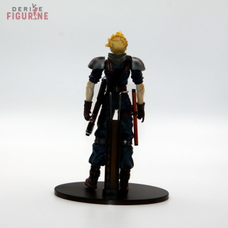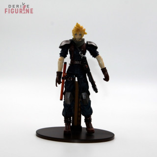 Second-hand and official Cloud Stife figure in ABS/PVC about 21 centimeters high. It is articulated and has all its accessories, namely two spare hands, an interchangeable head, a weapon, a baton and the base. This is a second-hand item in perfect condition from the Play Arts collection. The manufacturer is Square Enix, sold with box in good condition.