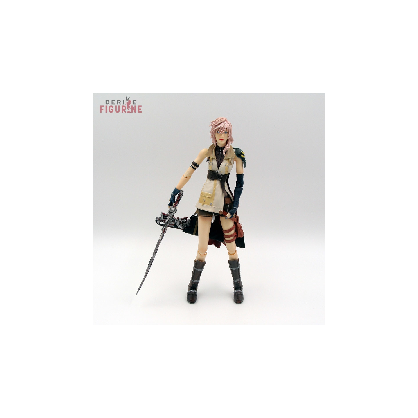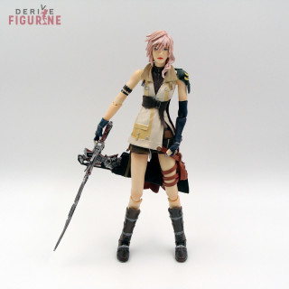 Second-hand and official Lightning figure in ABS/PVC about 28 centimeters high. Figurine articulated with all its accessories, namely spare hands, two weapons and the base. This is a second-hand item in perfect condition from the Play Arts Kai collection. The manufacturer is Square Enix, sold with box in good condition.