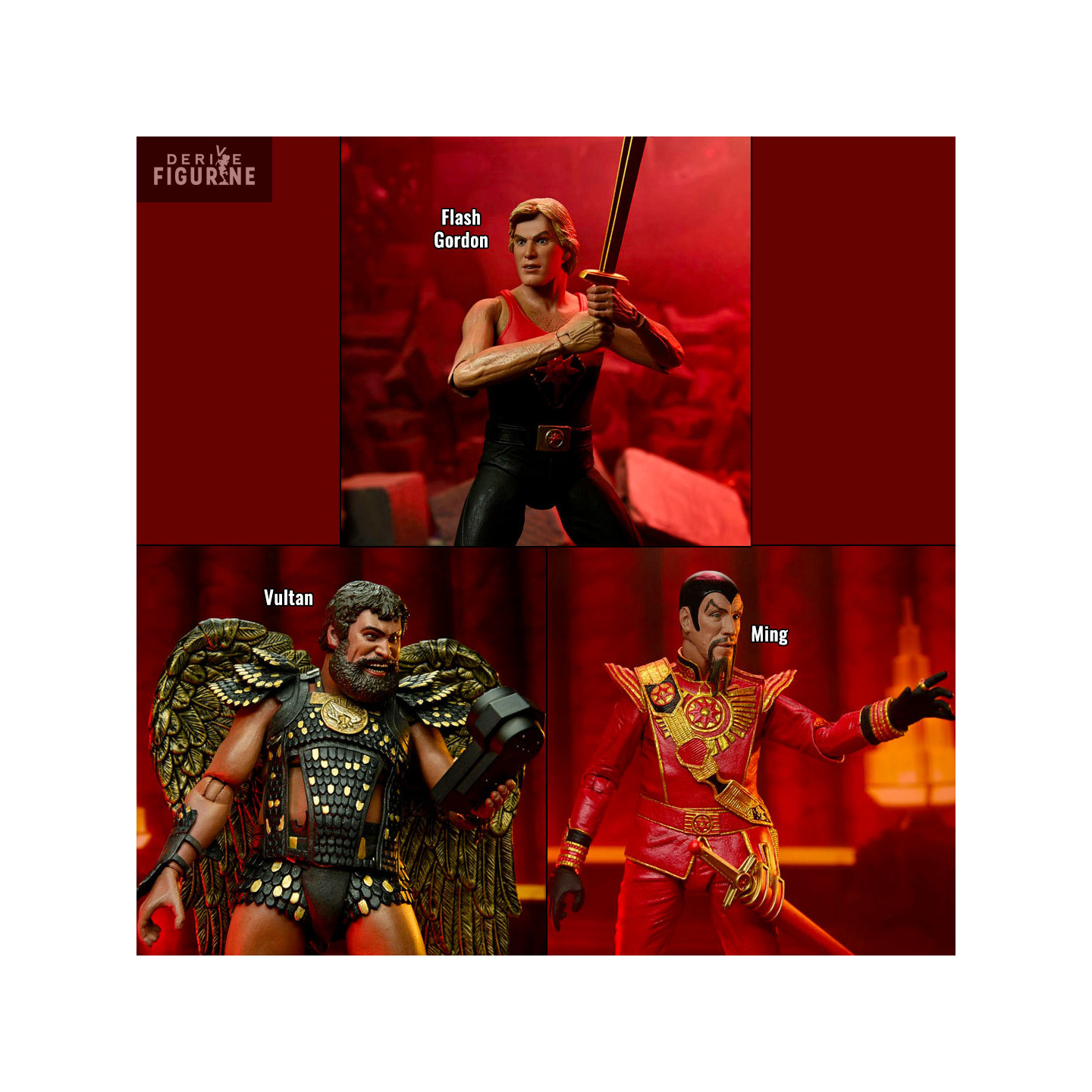 Official figure of your choice between Flash Gordon, Ming or Vultan which measures approximately 18 centimeters high. The manufacturer is NECA.