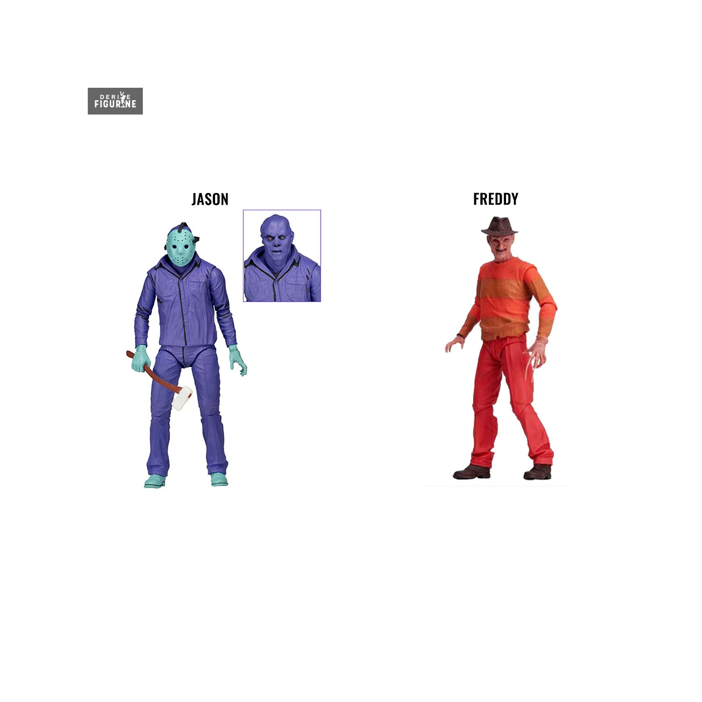 Official figure of your choice between Jason Voorhees or Freddy Krueger in PVC which measures about 17 centimeters high. The manufacturer is NECA.