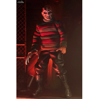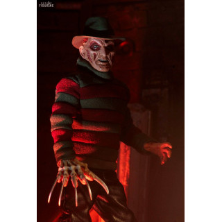 This retro figurine taken from the album Freddy comes out of the night of the saga of Freddy presents us a Freddy more complete than ever. Nancy will have to put an end to the action of the serial killer in this seventh film and here, Freddy is presented with a max of accessories drawn from this realization.