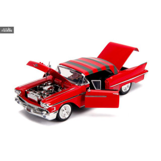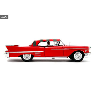 Official figures 1958 Cadillac + Freddy in die cast and injected plastic, scale 1/24. The manufacturer is Jada Toys.