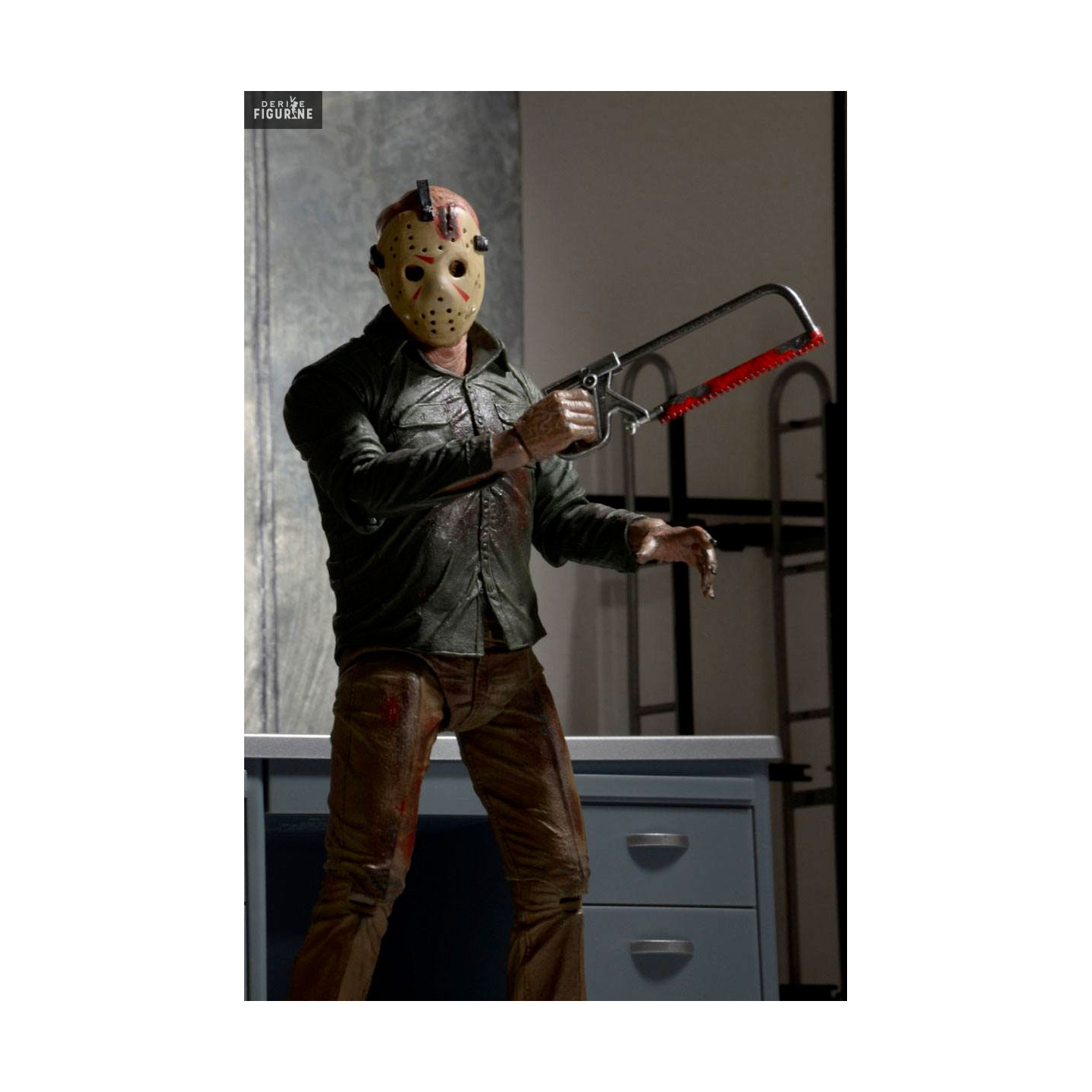Here is an articulated figure of Jason Voorhees. It is sold with several accessories that will allow you to stage as you want. It is also possible to remove his mask and frankly, given the state of his face, it is not really reassuring.
