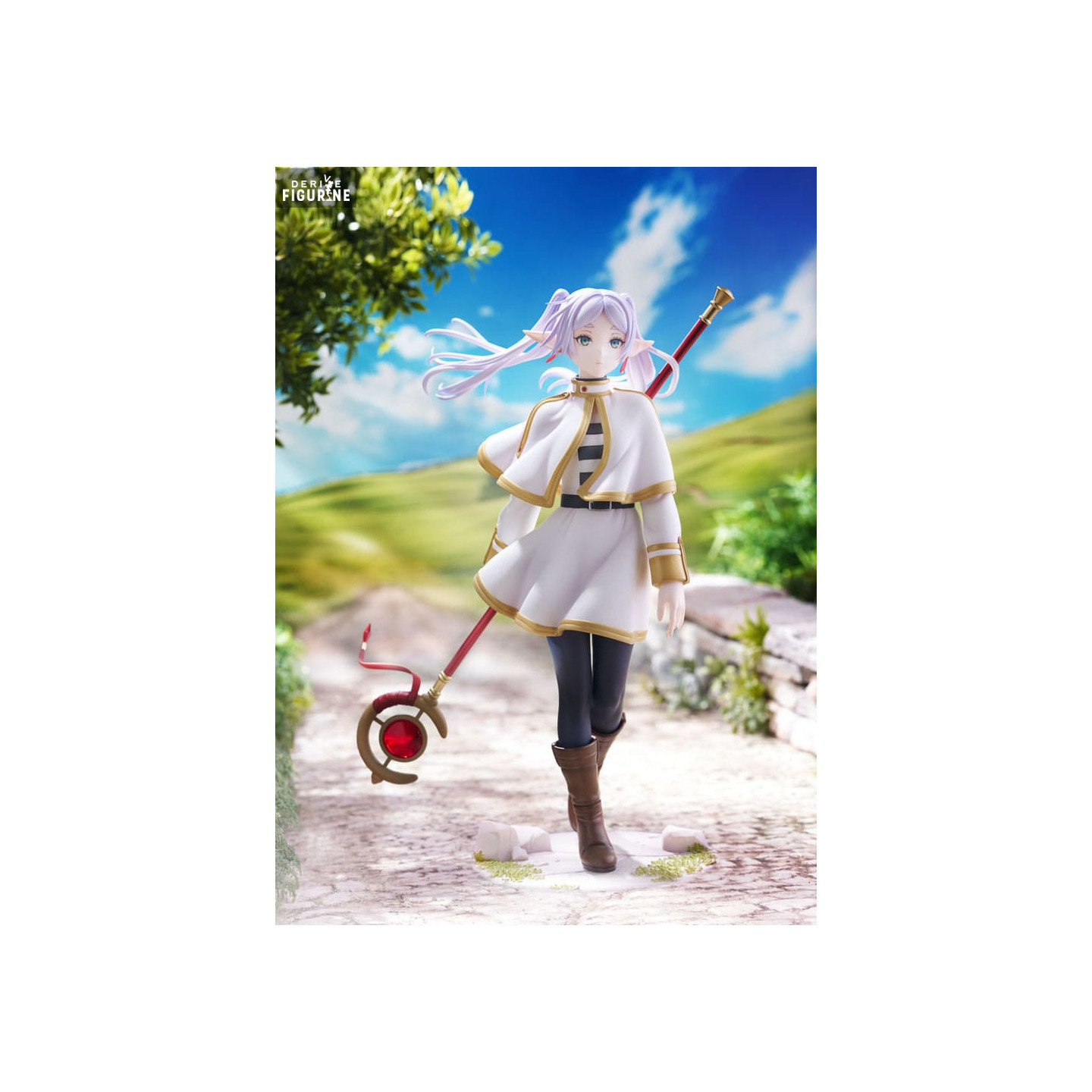 Frieren's posture is one of serenity; she is depicted in a moment of calm reflection, her mage's staff in hand, as if contemplating the path traveled and the adventures to come. The figure's base is decorated with delicate details that recall the rich and discovery-filled world of the series.